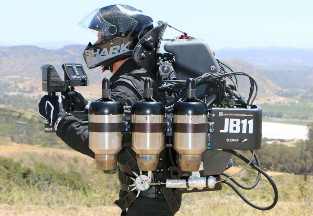 喷气背包称为JB-12,两侧都有三个小型喷气涡轮发动机,以防万一涡轮机在飞行过程中出现故障。喷气背包重约105磅,可以以高达120 mph的速度加速,因此您实际上会在空气中摇摆。