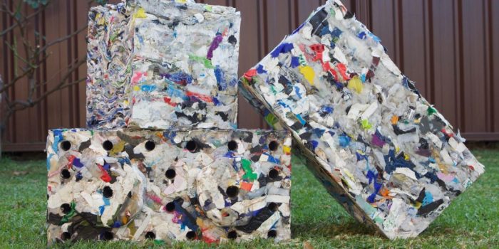 就这些块的生产而言,ByFusion使用了一些称为阻断剂.这一过程节省了大量的时间和资源,因为塑料在被挤压之前不需要清洗或精炼。因此,该公司生产了16 × 8 × 8英寸的积木,有三种不同的型号。其中一个模型是平的,而第二个设计有可以互锁的钉子,第三个是这两者的结合。