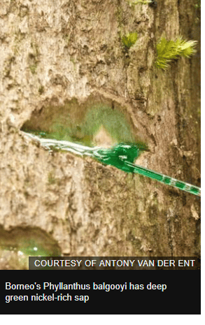 这种树引起科学家们的兴趣是有原因的——这种树已经进化到能从土壤中吸收异常多的有毒重金属,并将其储存在茎、叶和种子中。它的乳胶是蓝绿色的,因为它含有高达25%的镍。植物通常对有毒金属没有耐受性。因此,这个特殊的物种是独一无二的。