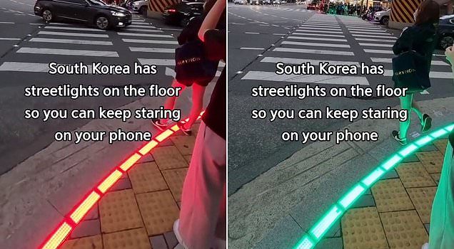 10月11日,来自首尔十字路口的Tiktok镜头显示绿色和红灯照亮了路缘,即使您盯着手机屏幕,也表明何时可以安全地过马路。
