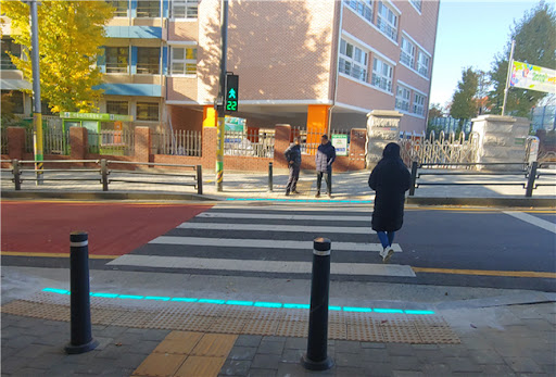 在2019年,这些地面LED信号灯被放置在韩国首尔。据说是作为试验的,灯光似乎已经演变为更永久的解决“ Smombies”问题的方法。
