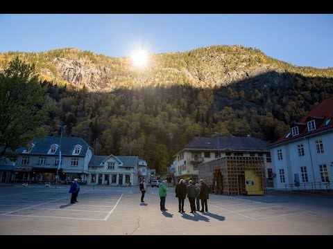 Rjukan是一个小镇,位于挪威南部的两座山之间。该镇坐落在电视标记的Vestfjord Valley,周围是陡峭的山脉,从9月到3月,没有阳光。