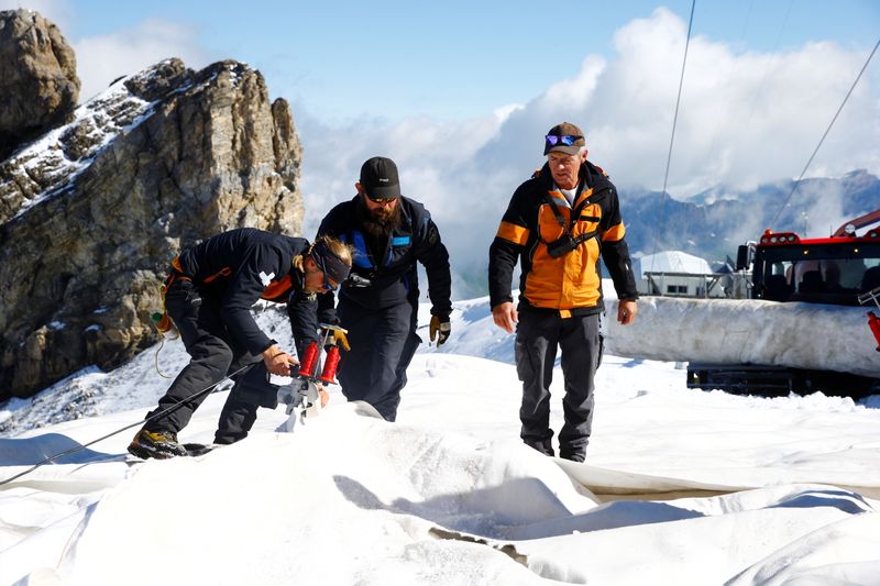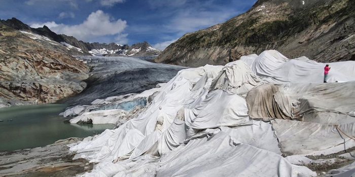 瑞士是瑞士阿尔卑斯山的滑雪胜地,使用毯子来保护冰川在夏日的阳光下融化。吉安·达姆斯(Gian Darms)为缆车操作员处理积雪条件,他讲述了这个独特的程序,并说:“我们像天然的保护盾一样将羊毛放在冰川上。”这些毯子被用来覆盖10,623英尺山地山顶的顶部,其冰川在过去几十年中已经融化了,由于全球变暖,预计在未来50年中将完全消失。