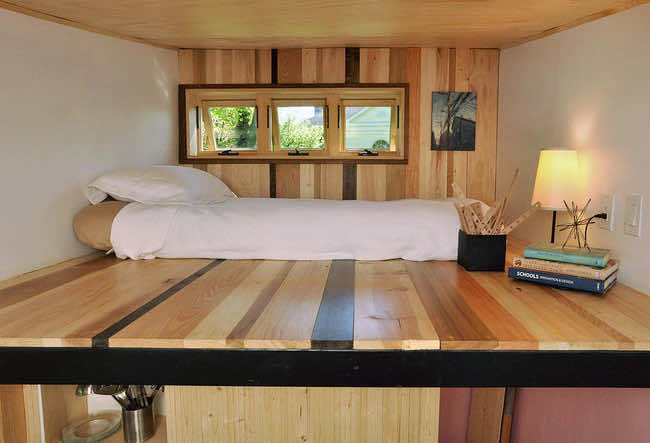 浴室上方是足够大的睡眠区域,可以拥有一个全额的床垫。因此,至少有一对夫妇生活在足够的空间中。
