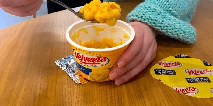 公司指出,其Velveeta壳&奶酪3 1/2“分钟”好了。然而,阿曼达·拉米雷斯说这只是每杯的时间需要微波。实际的准备过程,从搅拌水让奶酪酱汁勾芡,需要更长的时间。