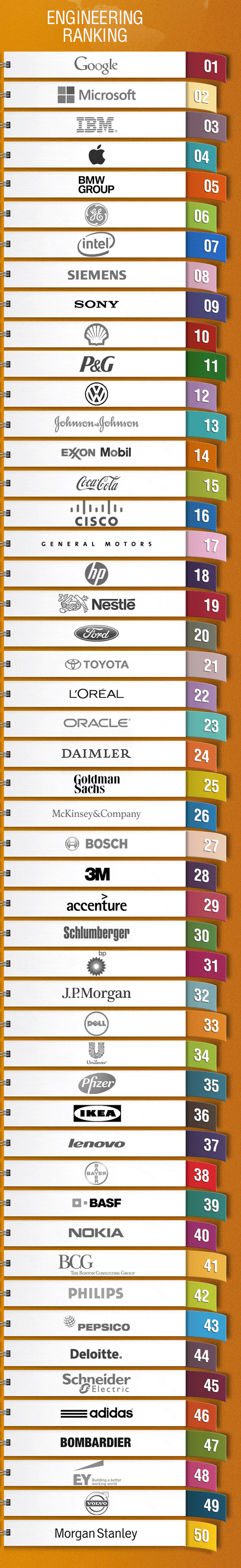 2013年全球最佳工程类雇主50强 管理 2014年1月9日 2 推特 脸谱网 谷歌+ Pinterest Tumblr Linkedin Reddit 电子邮件 广告 来自世界各地的20多万名学生被Universumglobal问及他们的理想雇主。以下是调查结果。 广告