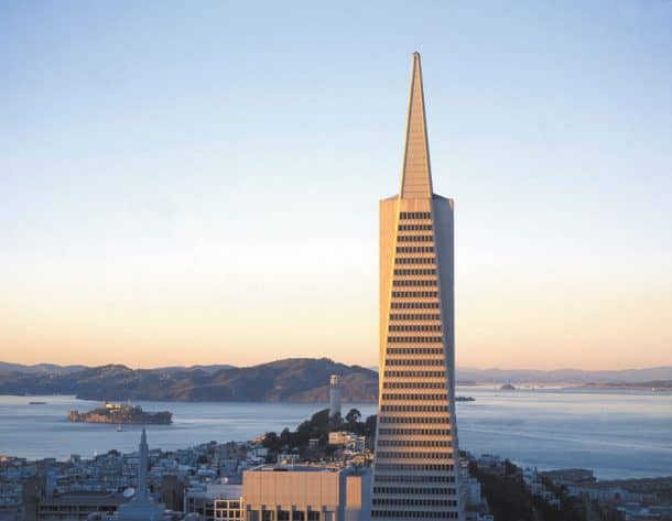 旧金山最高的摩天大楼,泛美金字塔高835英尺,具有非凡的抗震能力。该结构建立在钢和混凝土基础上,随着地震的震动而移动。建筑框架的矩形区域有对角线结构,给框架更多的支撑。在1989年的一场7.1级地震中,这座建筑摇晃了一分多钟,但没有受到伤害,也没有受到影响。
