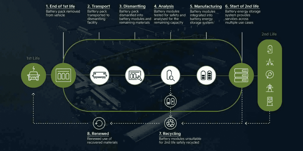 德意志·巴恩(Deutsche Bahn)(Encore DB)一直与许多企业合作,以购买二手电池,并为他们提供第二寿命作为储能解决方案。