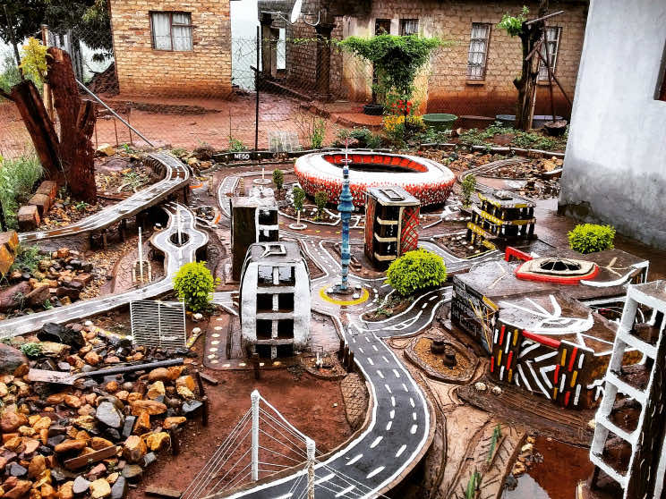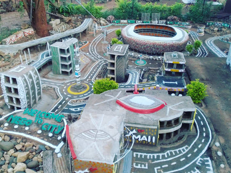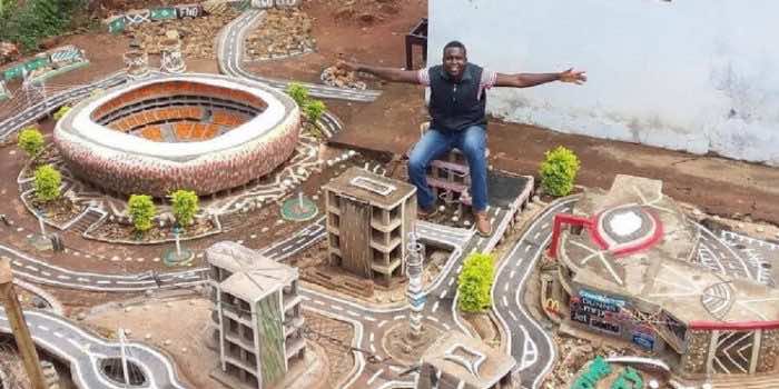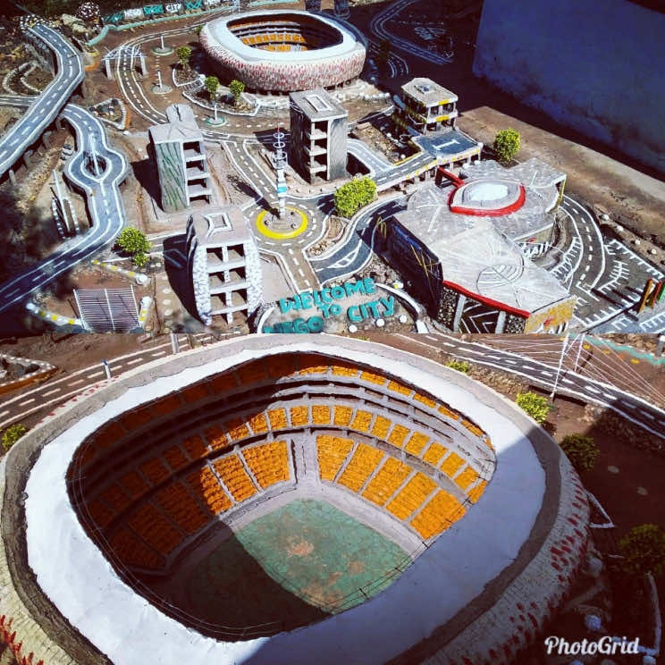 南非林波波省穆库拉村26岁的穆拉洛·尼戈·尼冈德尼想参观FNB体育场,但未能如愿,于是他在自家后院建造了一座迷你城市。FNB体育场于2010年为南非主办的FIFA世界杯筹备而建造。