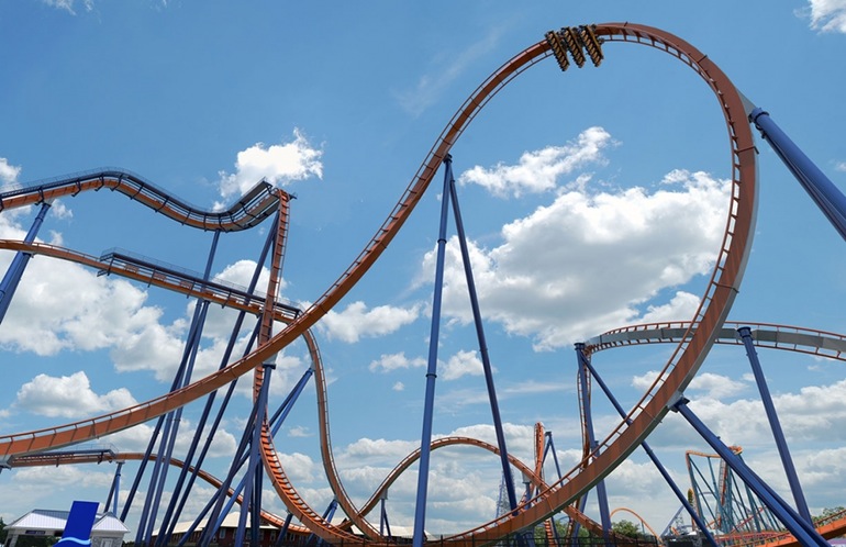 它将推出三列24人的无地板列车,乘客将坐在8个跨车厢中,并通过肩后约束装置固定在原地。这个令人惊叹的过山车的第一次攀登将把乘客带到223英尺的高度,这是过山车的顶峰,之后将在90度垂直下降的边缘暂停运动近4秒,然后向下下降214英尺。在剩下的旅程中,乘客会在伊梅尔曼转弯(165英尺)时翻个身,然后再向下俯冲125英尺,最后再进行270度旋转,结束旅程。