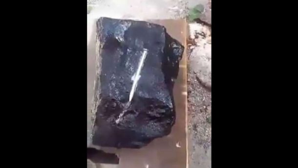 一位泰国用户在FB上发布的一段视频显示,一颗黑色石头正在融化一颗钉子,这段视频在泰国疯传。视频显示,一只戴着手套的手将一颗钉子放在一块石头上,钉子直接“融化”在石头上。“剪贴”页面给出了一个简短的视频说明“吃铁的石头在缅甸。一个克伦士兵发现的。把枪靠近它,然后枪就融化了。发现真相是专家的责任。”