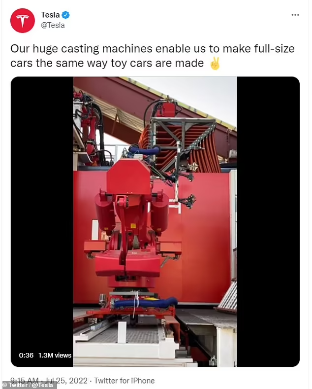 但是,特斯拉在Twitter上说:“我们的巨大铸造机使我们能够制作出全尺寸的汽车,就像玩具车一样。”同样,特斯拉首席执行官埃隆·马斯克(Elon Musk)表示:“单件式铸造可以减轻体重,大大简化工厂,提高乘车质量并降低道路噪音。”他进一步说,