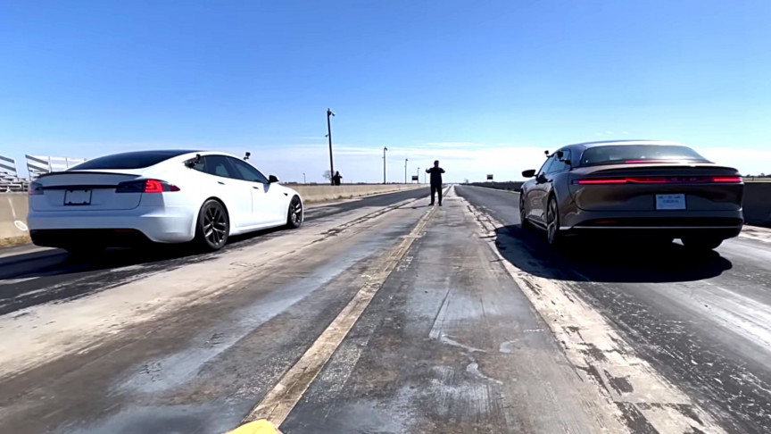 两辆汽车都以92%的费用开始。在第一轮比赛中,特斯拉Model S格子队以150.59英里 /小时的速度在9.83秒内完成了四分之一英里的胜利。但是在第二次奔跑中,Lucid Air以125.64英里 /小时的速度在10.21秒内完成了比赛。在第二次运行中,Model S格子无需使用启动模式而启动。然后在第三次运行中,Model S格子以146.02 mph的速度在9.67秒完成。还有一场比赛,其中两辆汽车在路上以40英里 /小时的速度开始比赛。在这种情况下,特斯拉再次获胜。