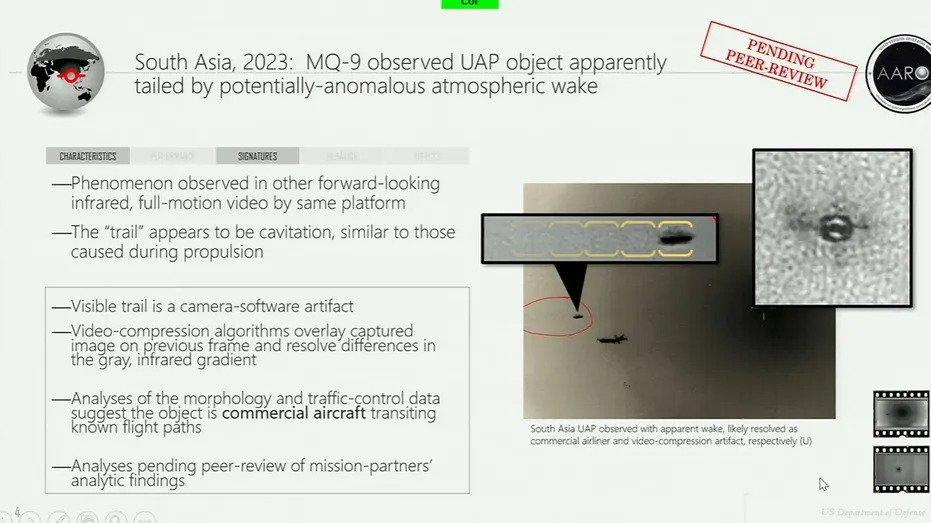 在参议院军事委员会对新兴威胁和功能,所有域异常分辨率办公室主任(AARO)议员的第二个视频两个。他带领他们走过整个视频“逐帧”,解释了UFO目击事件。