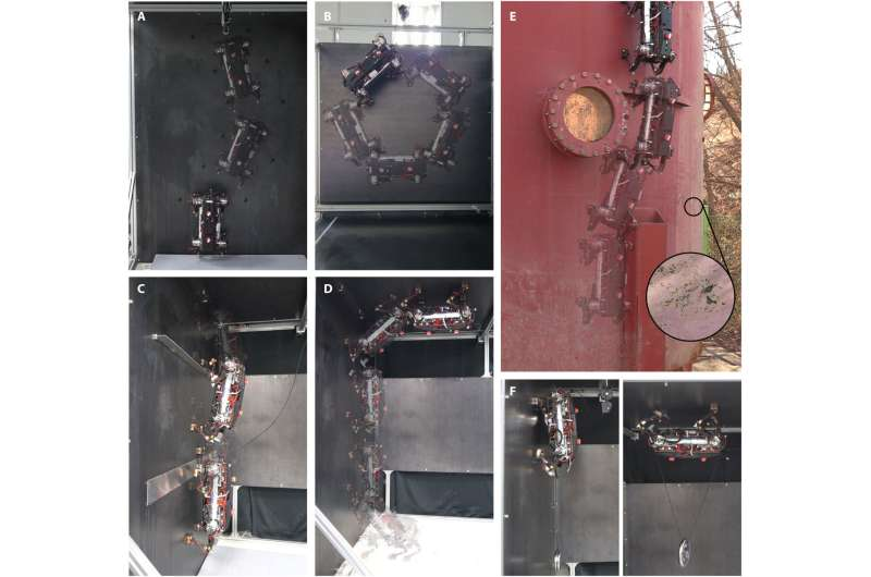 在测试过程中,漫威可以以每秒0.35米的速度爬上一个布满铁锈和灰尘的弯曲储罐。机器人的快速行走使其速度达到每秒0.7米。它甚至可以快速绕过坦克一侧的障碍物。