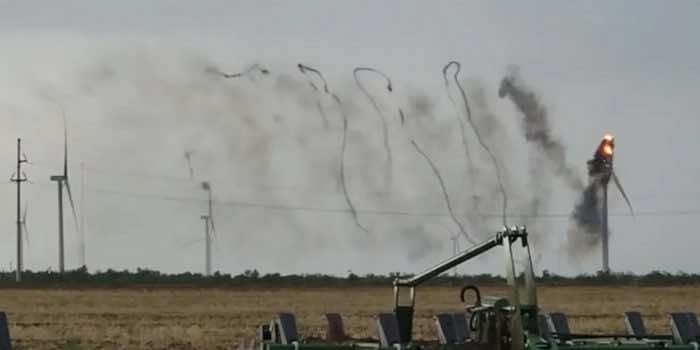 风车是产生可持续可再生能源的主要来源,但最近德克萨斯州发生了一起不幸的事故,导致一座正在运行的风车起火。昨天,这一事件被闪电击中,结果变成了烟雾圈的图案,成为了镇上的热门话题。一些居民拍下了这一不幸事件的视频,由于它产生的不同寻常的烟圈图案,它在互联网上疯传。下面是一段45秒的视频,其中一名居民拍摄到了燃烧的风车,后来,当地新闻频道在他们的推特上播放视频嵌入在下面。