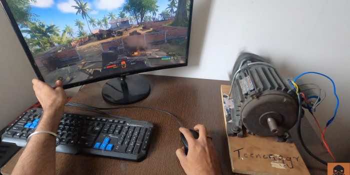 视频中,这个人试图为电子游戏添加更现实的效果。为了达到最佳效果,他将控制器的振动换成了一个噪音很大的电机。这是一个2880转的感应电机,因此当他驾驶卡车或发射子弹时振动失控。
