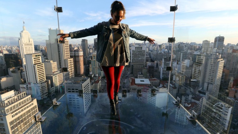 桑帕天空酒店位于42号公路nd它是圣保罗最高建筑Mirante do Vale的一层,悬在离地558英尺的高度。它提供了一个壮观的城市景色从三面和下面的盒子,游客可以看到他们周围的所有景色,实际上是在整个城市的顶部!”我觉得它很美,我喜欢它。这是圣保罗所缺少的东西西尔维娅·巴雷托(Sylvia Barreto)说,她是少数几个提前参观了甲板的游客之一。