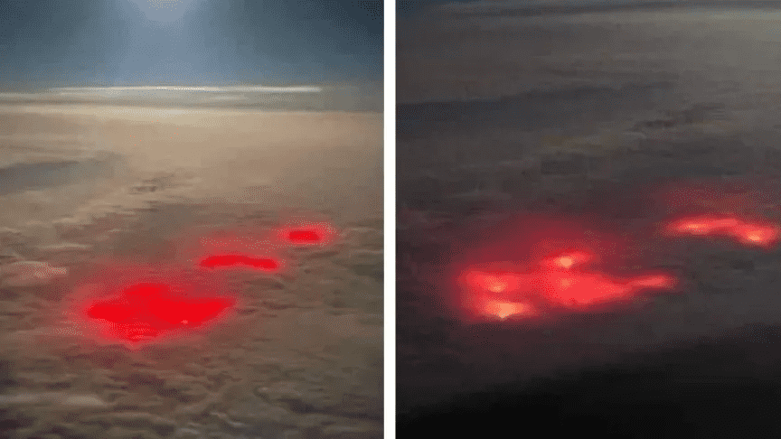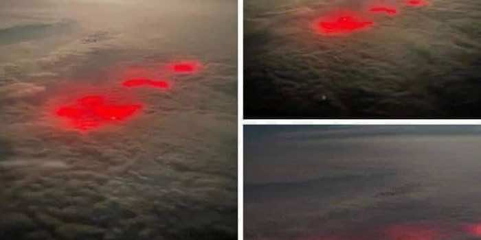 一名飞行员飞越大西洋,注意到他从未见过的奇怪的红色发光。照片显示了无法解释的红灯。它也在视频中也记录在视频中。