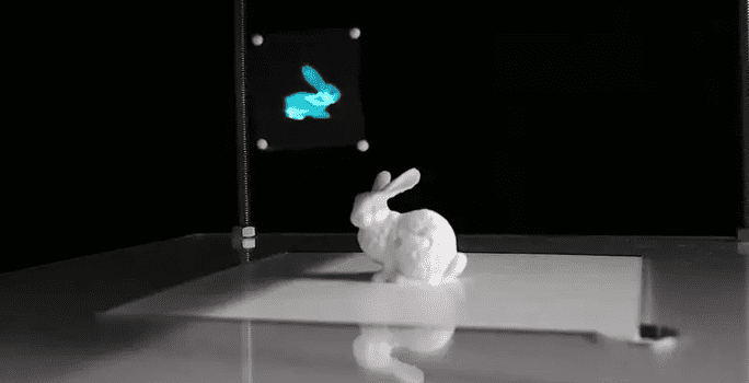 研究人员通过利用3D打印的白兔作为干扰物品来证明其技术的功效。不管兔子在哪里,物体都围绕着它悬浮。例如,在一个实验中,研究人员在兔子周围悬浮了珠子,将其转变为飞行的蝴蝶。