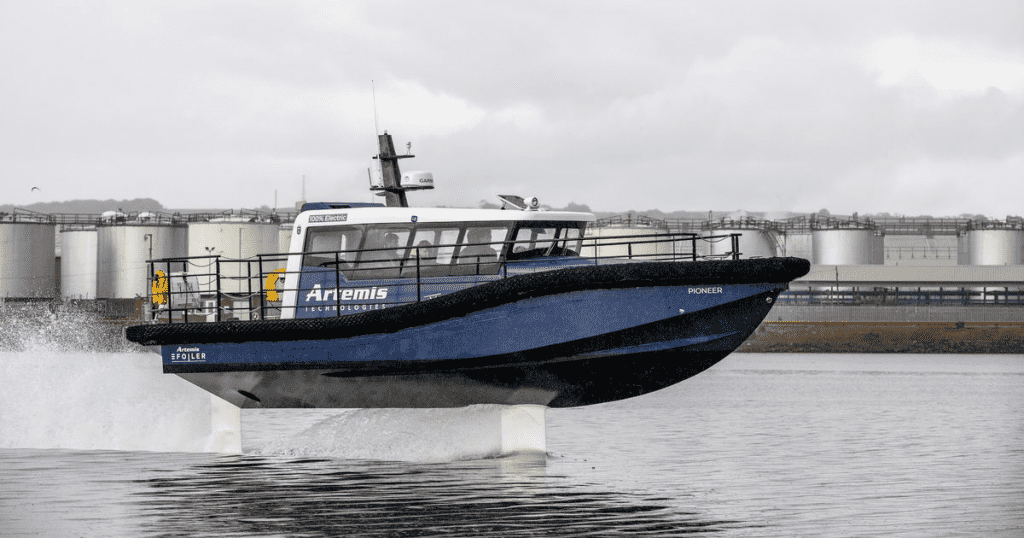 Artemis Technologies最近推出了有史以来第一个零排放电气船。这个巨大的项目是高达1200万英镑的结果,旨在通过其环境可持续的创造力来统治海洋行业。这款电船最令人兴奋的功能是,它通过使用水翼,将其固定在水下船底端,从而飞过水面。就像飞机上的钢制一样,这些液压减少了阻力并在推力时产生升力。该原则有助于它获得升降机,并确保整个旅程中的平稳巡游。