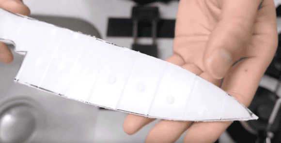 有人可能会认为塑料包装卷最危险的部分是金属切削刃上最后的方案,然而,实际的危险是轧辊本身。日本的有才华的刀制造商将铝箔变成一个锋利的刀片,现在他回来了与另一个功能叶片由塑料薄膜包装。他还演示了如何定期食品包装表可以硬,磨,可用于切片。