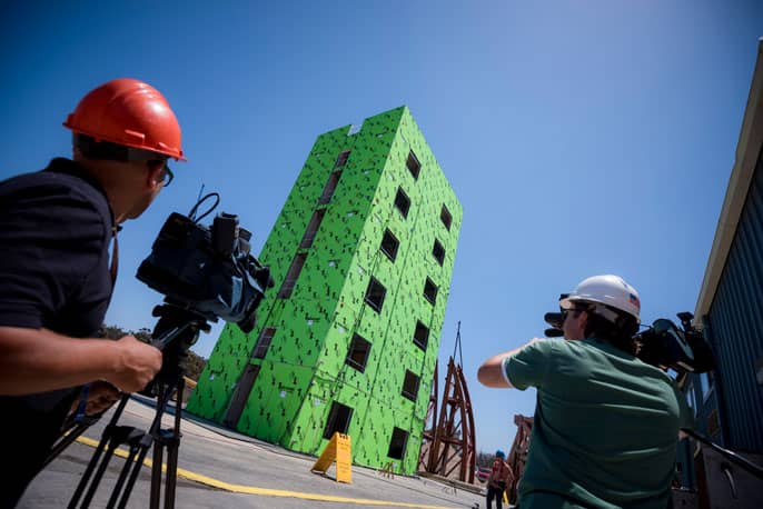 为了测试这些冷弯钢结构在真实地震下的表现,圣地亚哥大学的一组工程师建造了一座六层的CFS大楼。它建在世界上最大的室外地震振动台之上,是有史以来在振动台上进行测试的最高的CFS结构。