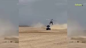 当您查看罕见事件的镜头时,低空的直升机在击打沙丘后撞到空中时,闪闪发光的什贝洛夫卡马兹高速卡车的屋顶撞到了什叶巴洛夫的卡马兹高速卡车的屋顶。