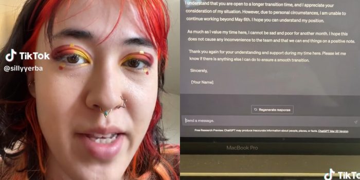 TikTok用户名叫玛丽最近从人工智能聊天机器人ChatGPT寻求帮助在制作一个专业写给她的老板放弃她的工作。