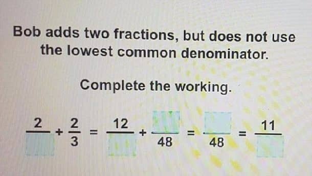 答案是:2/8 + 2/3 = 12/48 +32/48 = 44/48 = 11/12